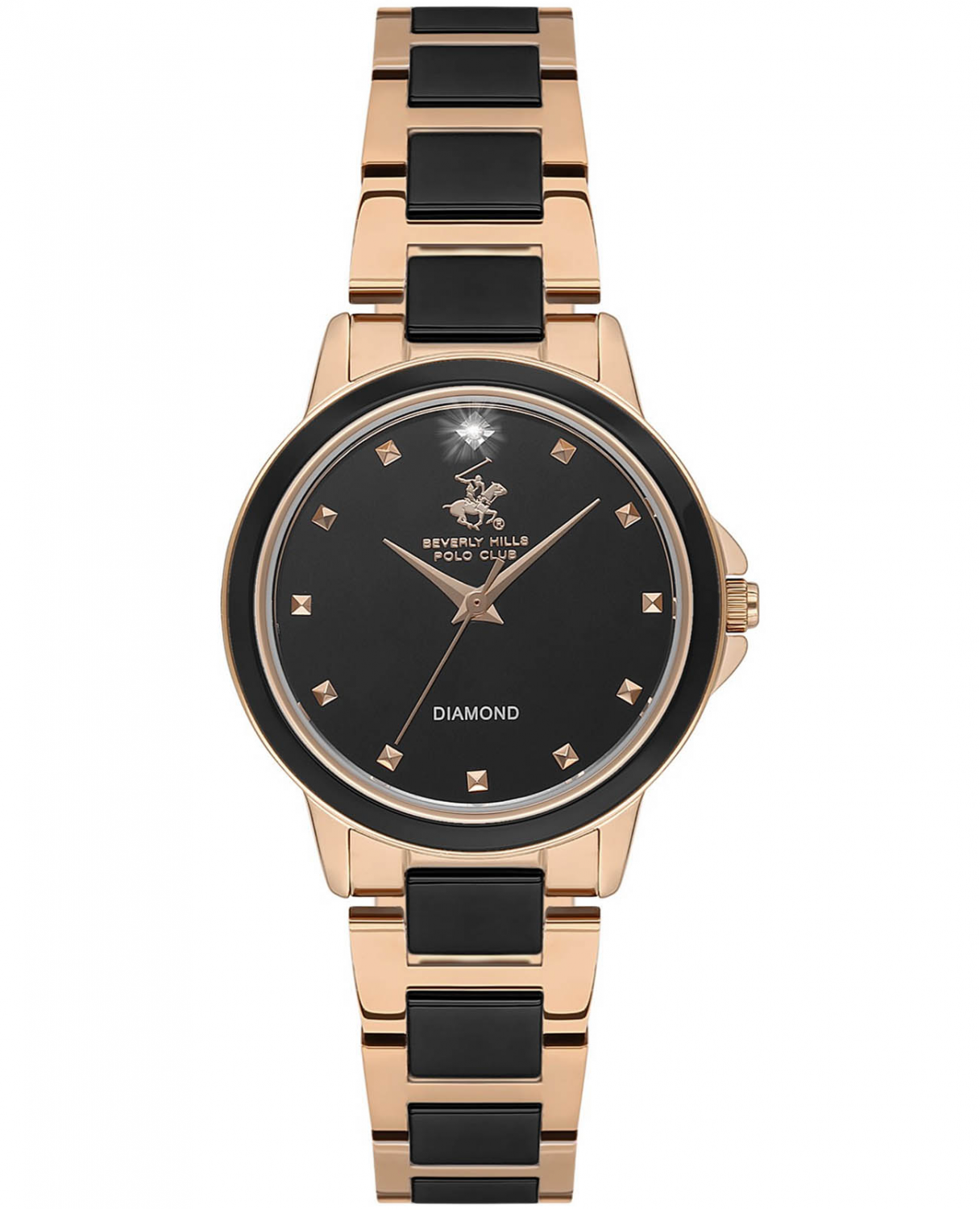 Женские наручные часы с надёжным кварцевым механизмом. Минеральное стекло устойчивое к мелким механическим повреждениям. Корпус часов изготовлен из нержавеющей стали с IP-покрытием. Безель с IP-покрытием. Класс водозащиты: 50 метров, позволит защитить корпус от случайных брызг или капель дождя. Стальной браслет с IP-покрытием и керамическими вставками на раскладной застёжке.