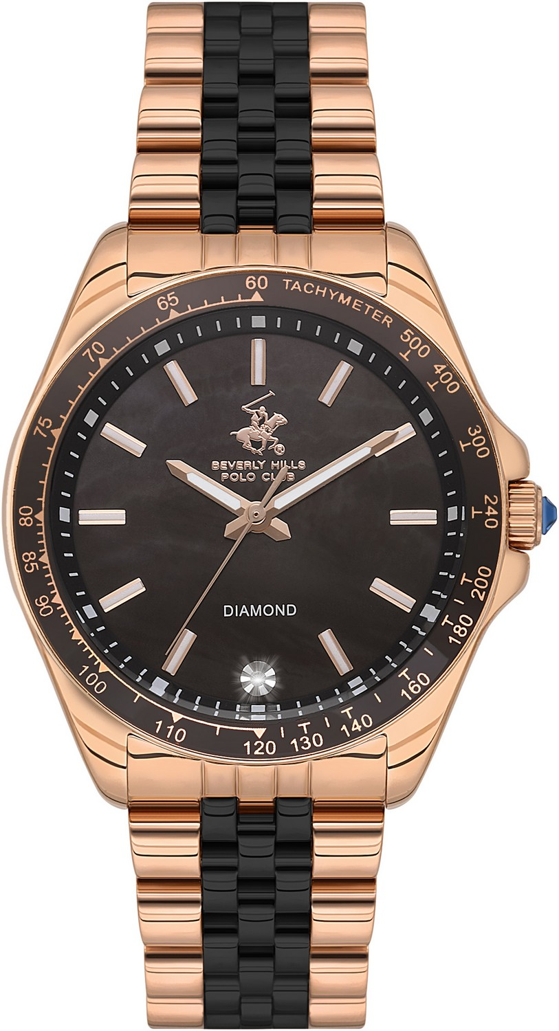 Циферблат защищен минеральным стеклом и украшен бриллиантом.Браслет с раскладывающейся застежкой.