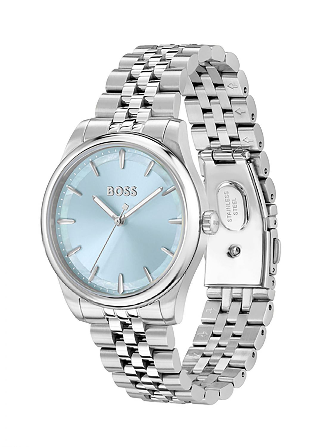 Женские наручные кварцевые часы. Диаметр циферблата 36 мм.. Круглый корпус изготовлен из гипоаллергенной нержавеющей стали 316L. Прочное минерадьное стекло. Удобный стальной браслет. Водозащита 30WR.