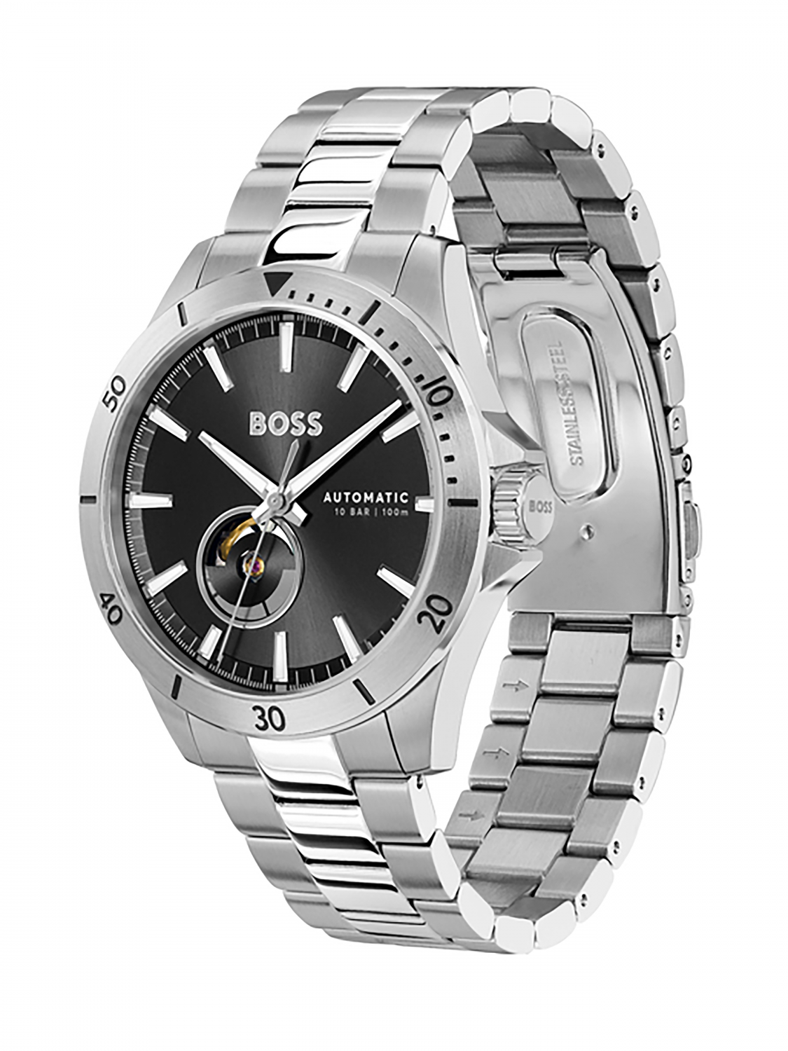 Мужские механические часы BOSS 1514202, коллекция TROPER AUTOMATIC. Корпус часов и браслет выполнены из нержавеющей стали. Диаметр : 43мм. Водозащита 10 bar.