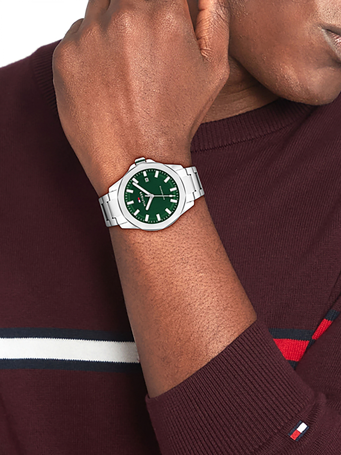 Корпус и браслет часов выполнены из нержавеющей стали. Браслет с раскладывающейся застежкой.