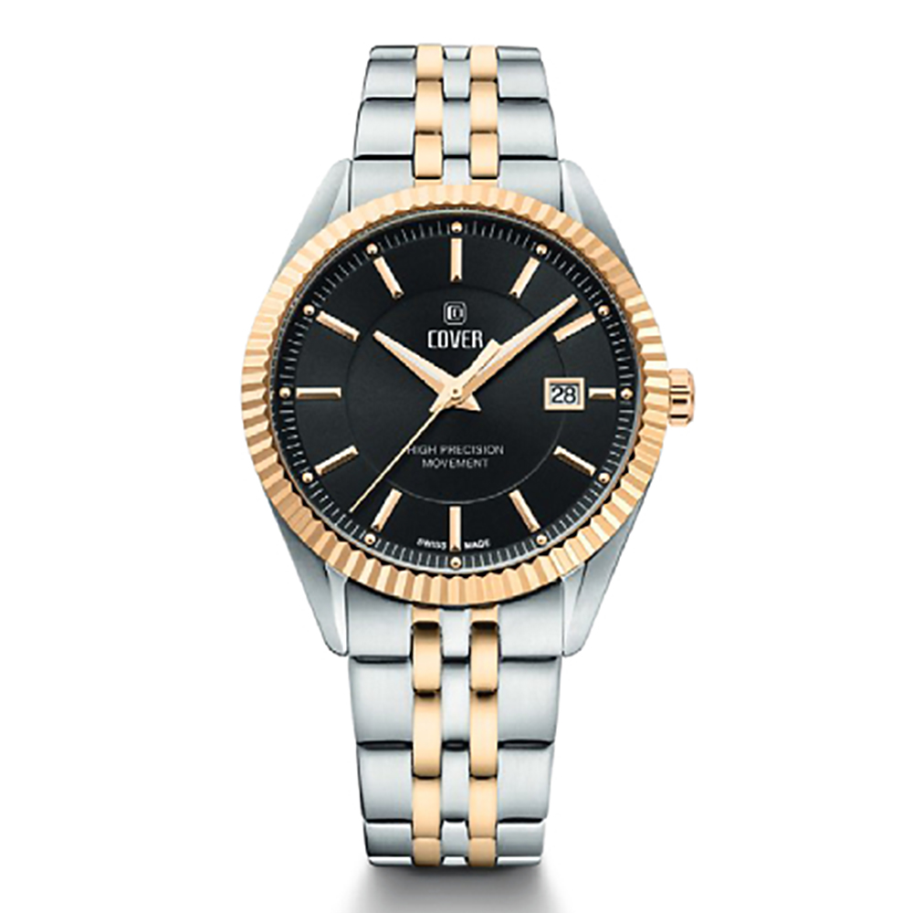 COVER CO208.04 (также известная как Alston Gent) — это элегантные мужские швейцарские наручные часы, сочетающие классический стиль с надежностью. Высокоточный швейцарский кварцевый механизм. Циферблат чёрного цвета с накладными метками и индикацией даты в положении «3 часа». Диаметр корпуса составляет примерно 40 мм.. В этой модели установлено минеральное стекло с сапфировым напылением. Корпус и браслет изготовлены из нержавеющей стали. Модель имеет двухцветное (биколор) исполнение — сочетание серебристого и золотистого цветов благодаря PVD-покрытию.
