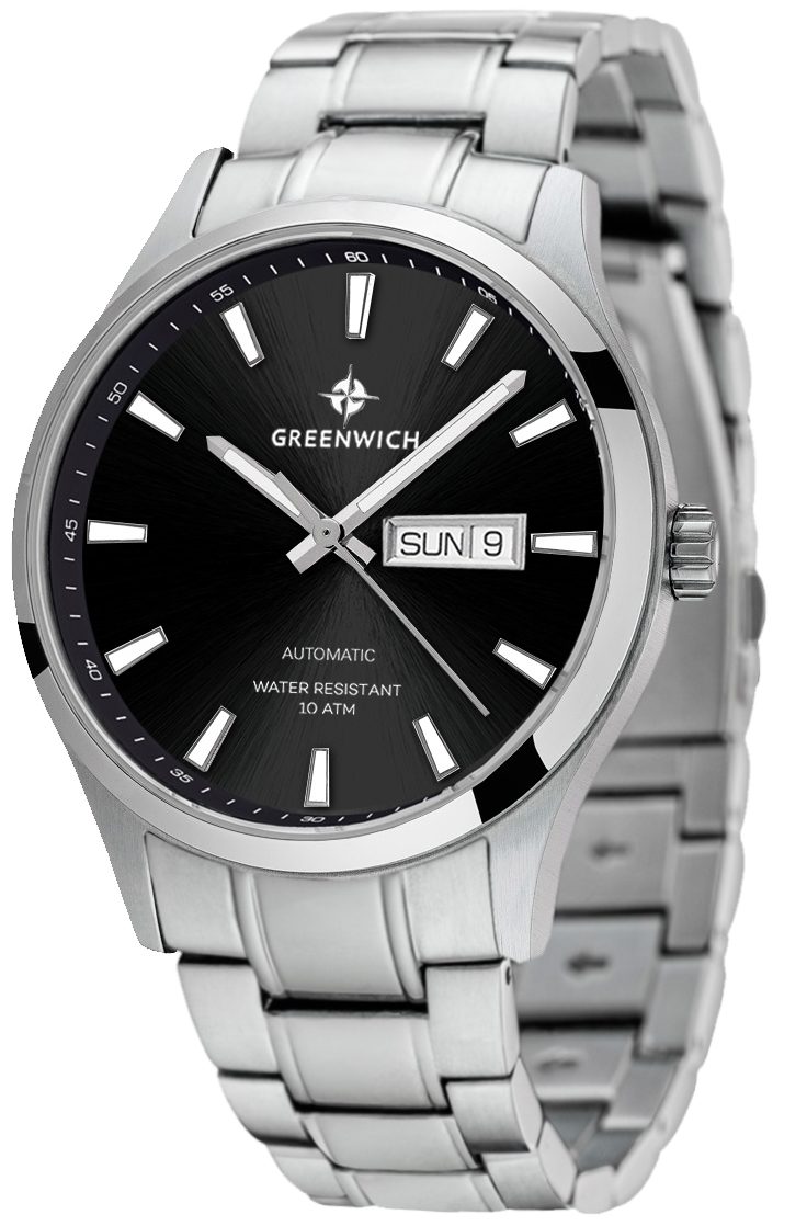 Элегантность, классические линии и уважение традиций задают тон дизайну часов серии Good Luck. Корпус модели, состоящий из трех частей, можно с уверенностью назвать массивным: его диаметр равен 43 мм. Корпус сделан из нержавеющей стали, украшенной двумя видами полировки: зеркальной по безелю и матированием. Задняя крышка прозрачная: вы сможете без проблем любоваться автоматическим механизмом TMI, на роторе которого выгравирован силуэт парусника, символа английских мореходов, и название серии. На фоне черного циферблата с полировкой и эффектом градиента расположились накладные риски и крупные стрелки. Они хорошо читаются при любых условиях освещения — люминесцентный состав, которым покрыты эти элементы, светится в темноте. В модели установлено минеральное стекло. Повышенная водостойкость составляет 10 атмосфер. Часы дополняет браслет из нержавеющей стали с удобной в использовании и надежной застежкой-клипсой.