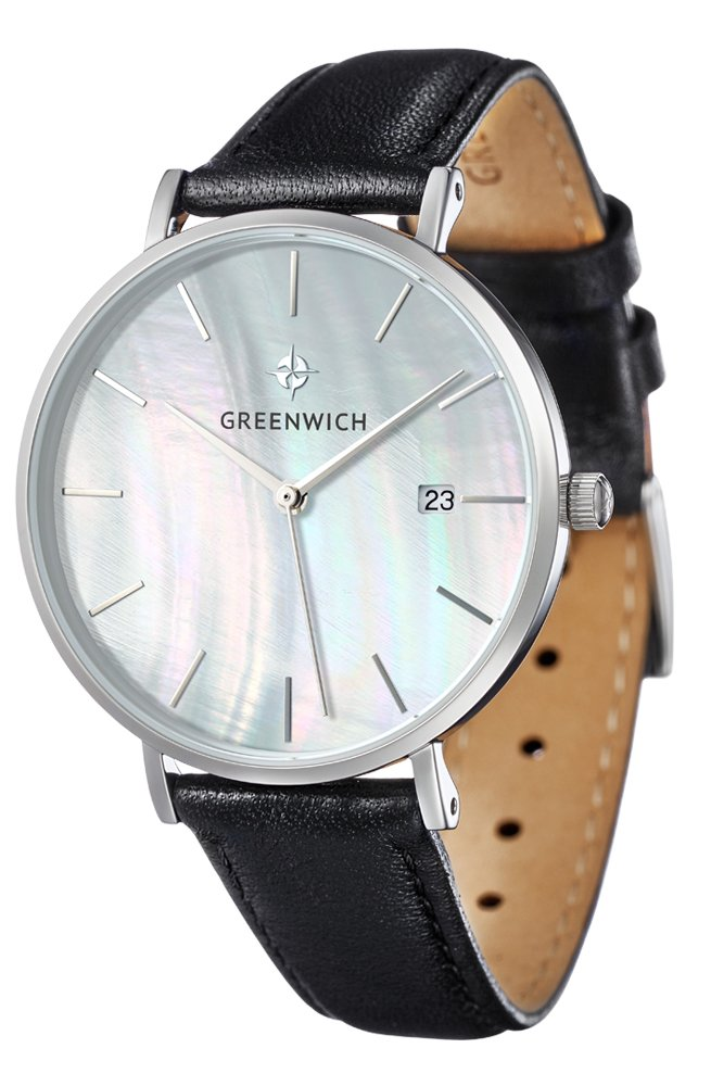 Лаконичность часов Shell не выглядит упрощенной: это красивый женственный аксессуар, обладающий собственной изюминкой: циферблатом из натурального перламутра белого цвета. Его переливы подчеркивают изысканность образа, а вариативность палитры гарантирует, что такая модель подойдет под гардероб любой расцветки. Изящный корпус диаметром 35 мм из нержавеющей стали украшает зеркальная полировка. К накладным индексам и стрелкам прилагается еще одна полезная функция: текущая календарная дата, свериться с которой можно, взглянув на квадратное окошко, вынесенное в положение «3 часа». Дополняет образ черный ремешок из натуральной кожи с прошивкой.