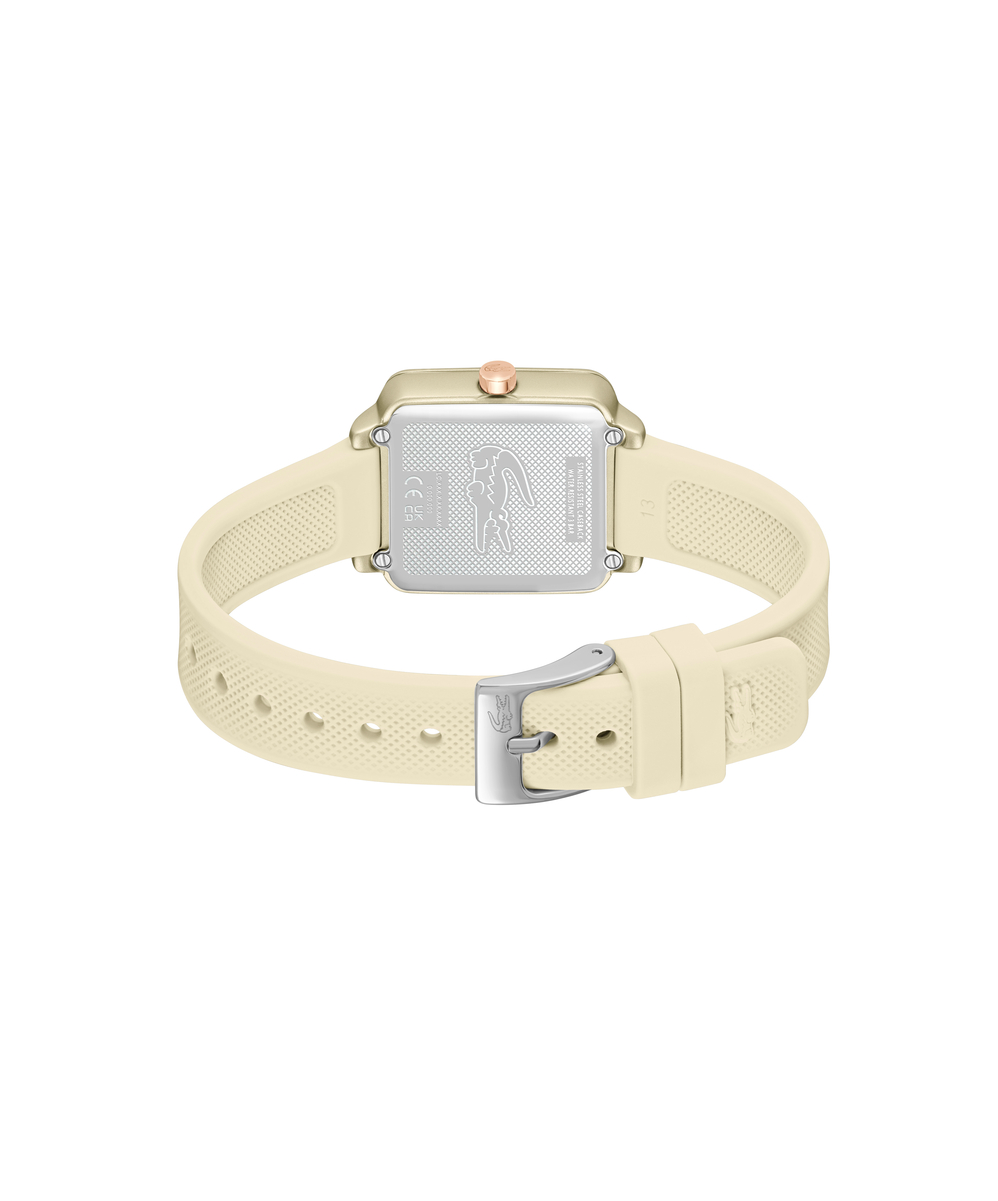 Изящный минималистичный дизайн квадратного циферблата с едва заметным рисунком Хлóпка Пикé – ДНК Lacoste.12.12 Flow. Женские элегантные кварцевые часы,выполненые в нежном нюдовом тоне.Минеральное стекло.Ремешок выполнен из гипоаллергенного и термостойкого силикона. Водостойкость 3 АТМ.