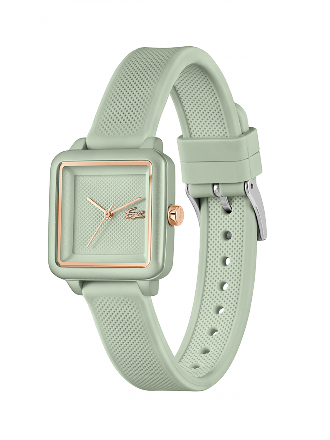 Изящный минималистичный дизайн квадратного циферблата с едва заметным рисунком Хлóпка Пикé – ДНК Lacoste.12.12 Flow. Женские элегантные кварцевые часы,выполненые в нежном зеленом тоне.Минеральное стекло. Ремешок выполнен из гипоаллергенного и термостойкого силикона. Водостойкость 3 АТМ.