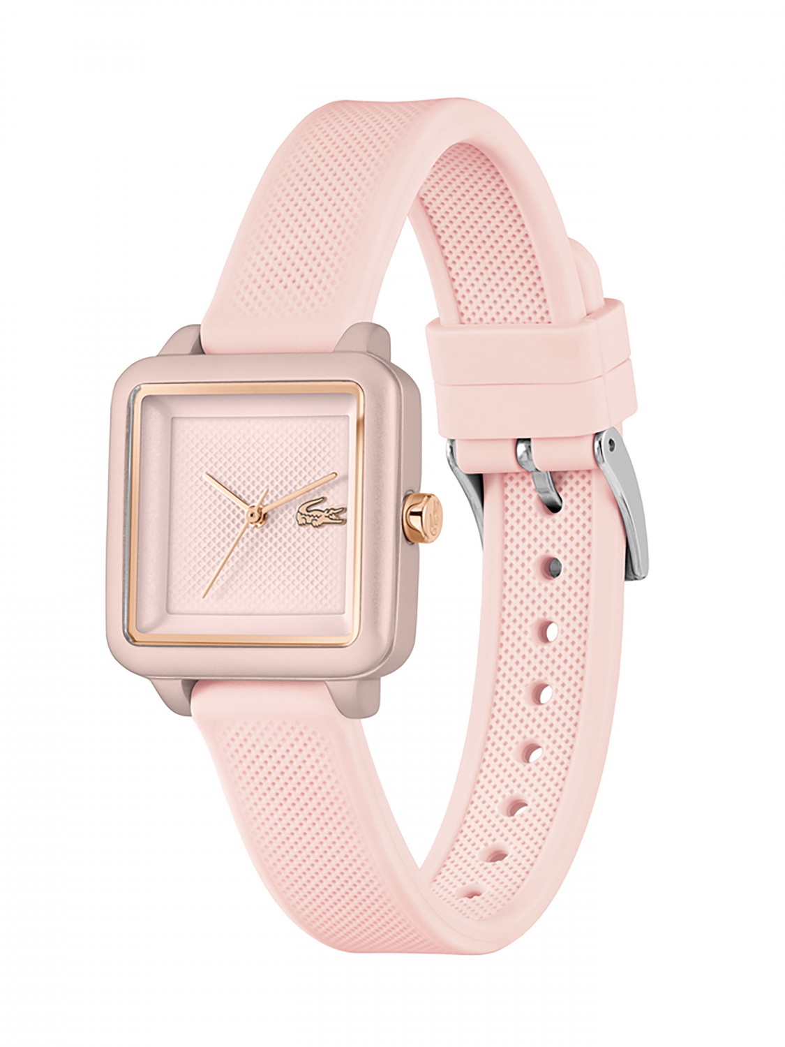 Изящный минималистичный дизайн квадратного циферблата с едва заметным рисунком Хлóпка Пикé – ДНК Lacoste.12.12 Flow. Женские элегантные кварцевые часы,выполненые в нежном розовом тоне.Минеральное стекло. Ремешок выполнен из гипоаллергенного и термостойкого силикона. Водостойкость 3 АТМ.
