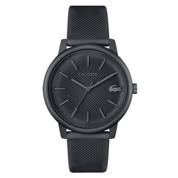 Наручные мужские часы Lacoste.12.12 Move. Текстурированный циферблат с фирменным логотипом. Алюминиевый корпус защищен минеральным стеклом.Накладные метки в виде штрихов.Текстурированный силиконовый ремешок с классической застежкой, украшенной фирменным логотипом.
