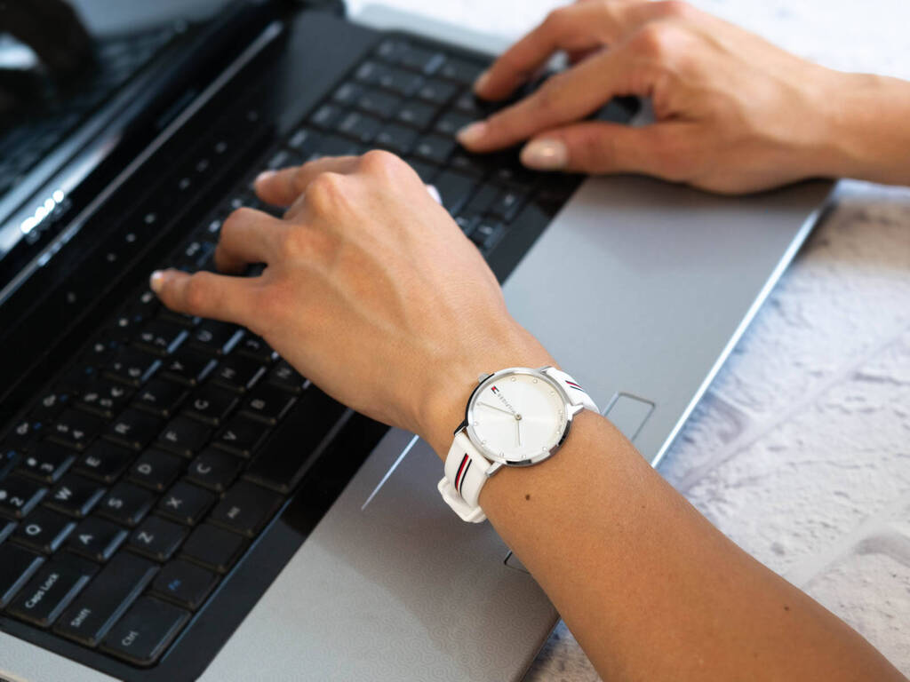Часы наручные женские кварцевые Tommy Hilfiger 1782735.Серебристые с белым циферблатом.Минеральное стекло.Спортивный,силиконовый ремешок,выполнен в цветовом решении этого бренда.Ремешок на традиционной застежке.Водозащита 5ATM.