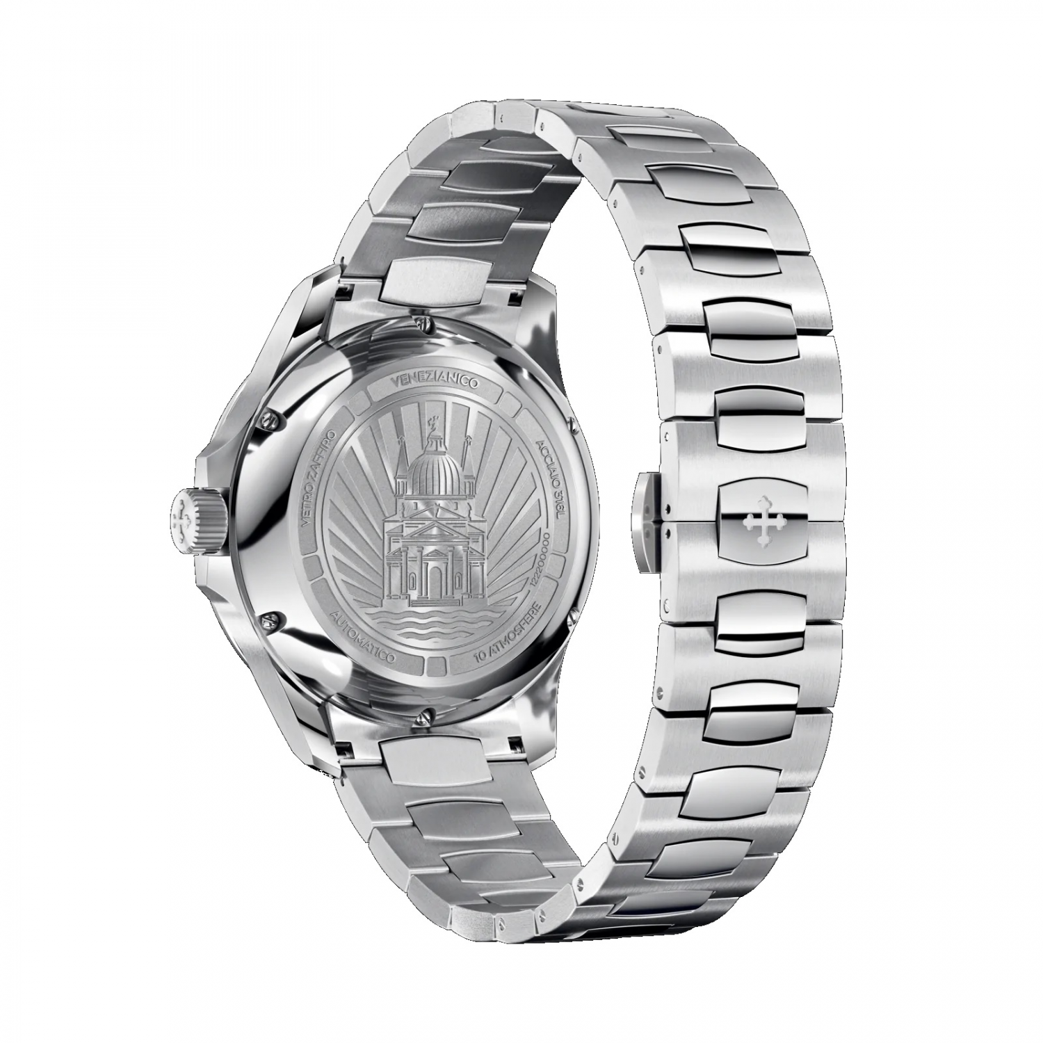 Простые и удобные часы на стальном браслете - идеальный вариант на каждый день. Redentore 40. Мужские часы с круглым корпусом. Дизайн вдохновлен храмом Basilica del Santissimo Redentore, который находится на самом широком острове Венеции. Архитектор храма Андреа Палладио, который известен как отец неоклассического стиля. В механизме 24 камня, 21600 полуколебаний в час. Запас хода 41 час. Возможность ручного завода. Циферблат с метками в виде штрихов выполнен по технологии Sunray (солнечные лучи). Клиновидные стрелки в стиле Dauphine. Окошко даты находится в положении 3 часа. Задняя крышка крепится на 6-ти винтах и украшена выгравированным изображением храма Basilica del Santissimo Redentore. Индивидуальный серийный номер. Рифленая заводная головка с защитой. Браслет Canova с раскладывающейся застежкой. Для изготовления данного браслета требуется 16 различных форм.